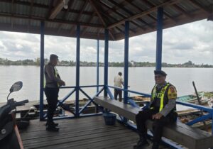 Personel Polsek Kapuas Murung Laksanakan Giat Rutin Cek Situasi Pelabuhan Fery Penyebrangan Di Kelurahan Palingkau Baru