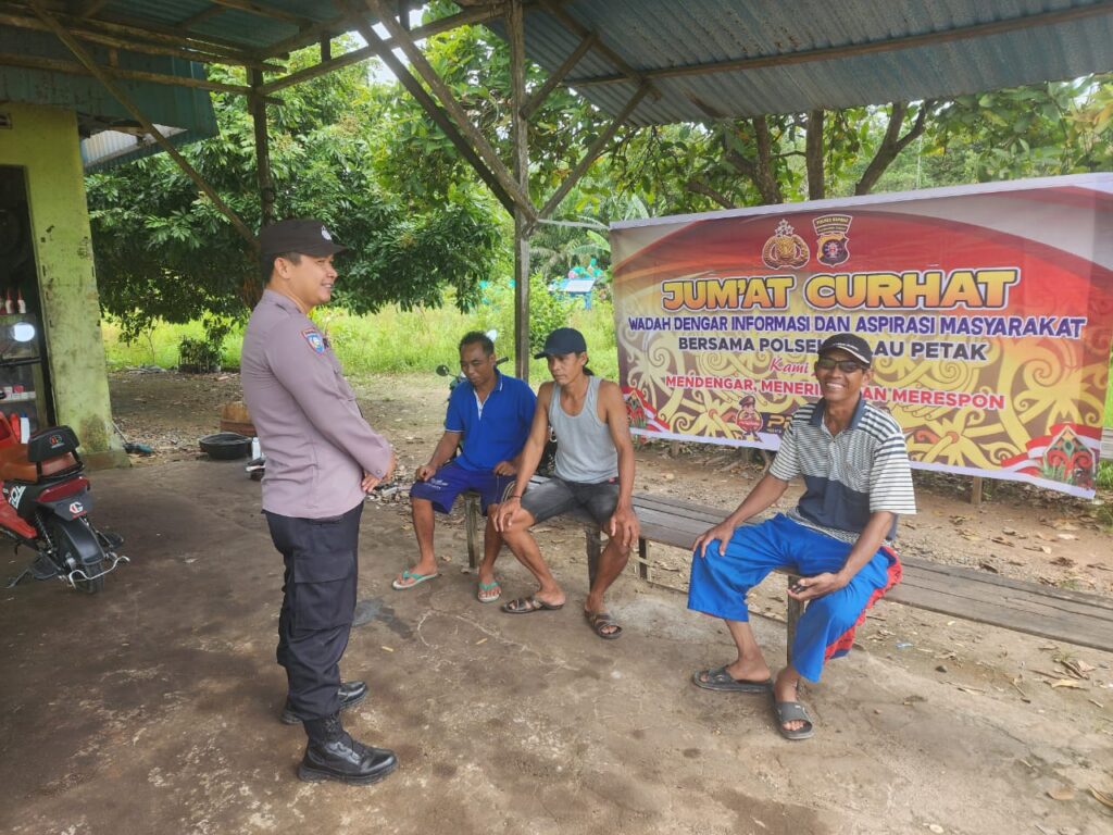 KAPUAS – Personel Polsek Pulau Petak jajaran Polres Kapuas Polda Kalteng Kaspkt II Aiptu Anjung H. Tumang dan Banit Binmas Aipda Rudi Fitriadi Menggelar kegiatan “Jumat Curhat” untuk mendengar keluhan masyarakat secara langsung, Jumat (31/10/2025) di Desa Mawar Mekar yang dihadiri oleh Masyrakat sekitar Kecamatan Pulau Petak Kabupaten Kapuas.