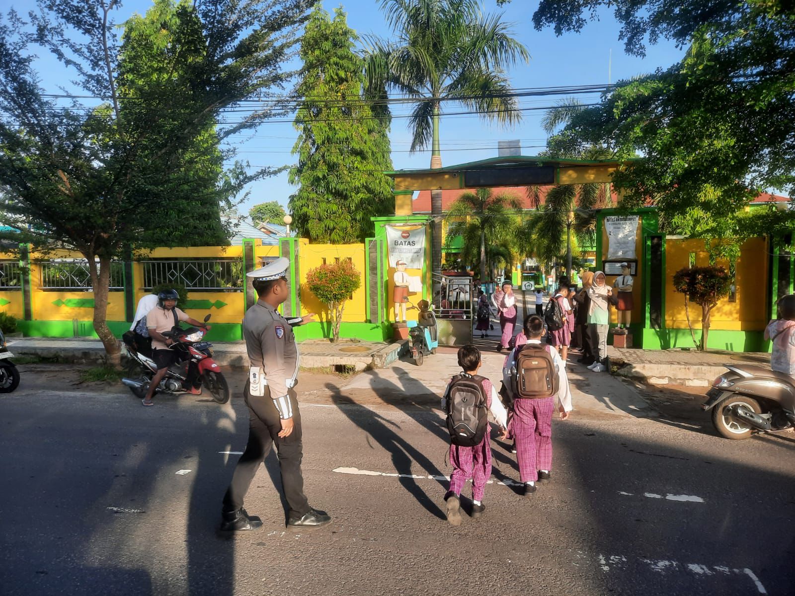Dalam pelaksanaannya, petugas aktif mengatur arus kendaraan di titik rawan kepadatan serta membantu para pelajar dan masyarakat yang hendak menyeberang jalan. Kegiatan ini bertujuan untuk memastikan kelancaran arus lalu lintas serta menciptakan situasi yang aman dan tertib di kawasan tersebut.