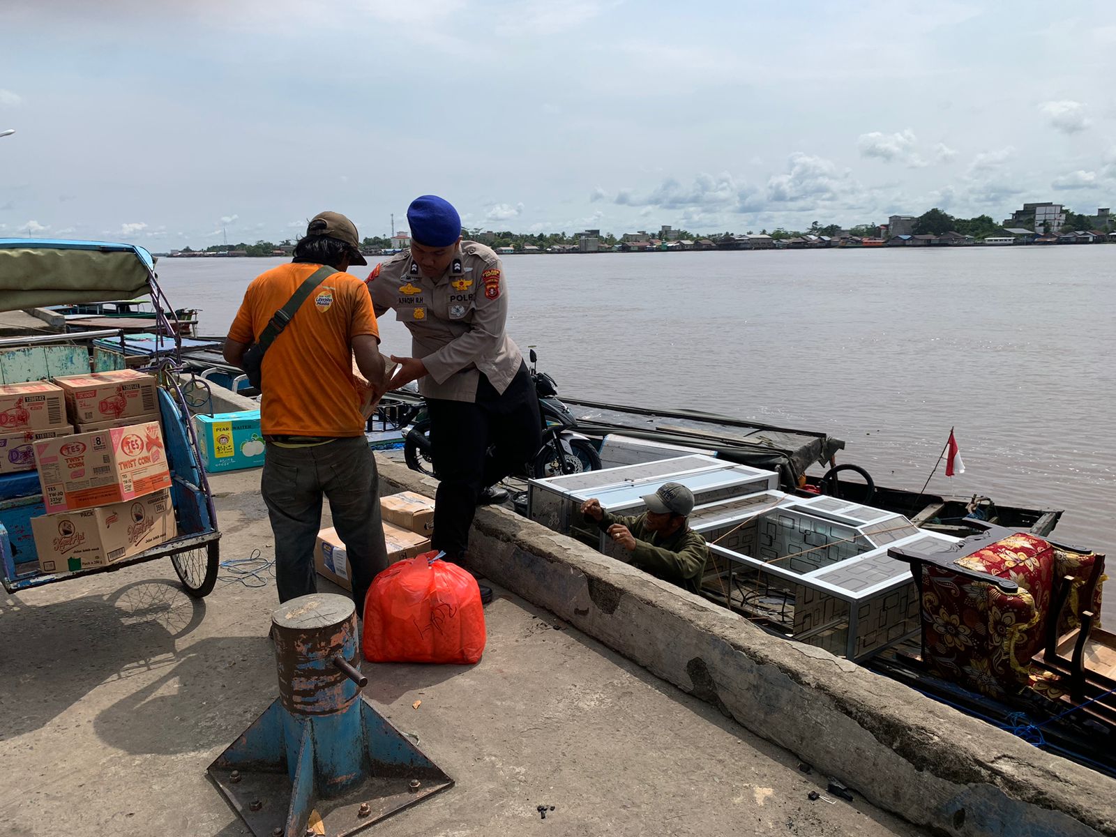 KUALA KAPUAS – Personel Satuan Polisi Perairan dan Udara (Satpolairud) Polres Kapuas kembali menunjukkan kehadiran Polri di tengah masyarakat melalui pelayanan humanis. Dalam kegiatan rutin pengamanan dan pemantauan arus transportasi sungai, anggota Satpolairud terlihat membantu warga yang tengah melakukan bongkar muat barang di Pesisir DAS Kuala Kapuas, Rabu (8/4/2026).