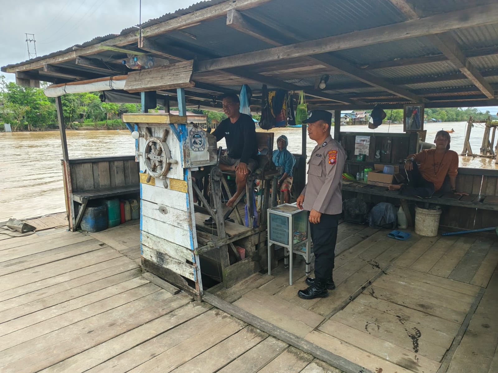 Personil Polsek berikan imbauan keselamatan kepada penumpang feri penyebrangan.