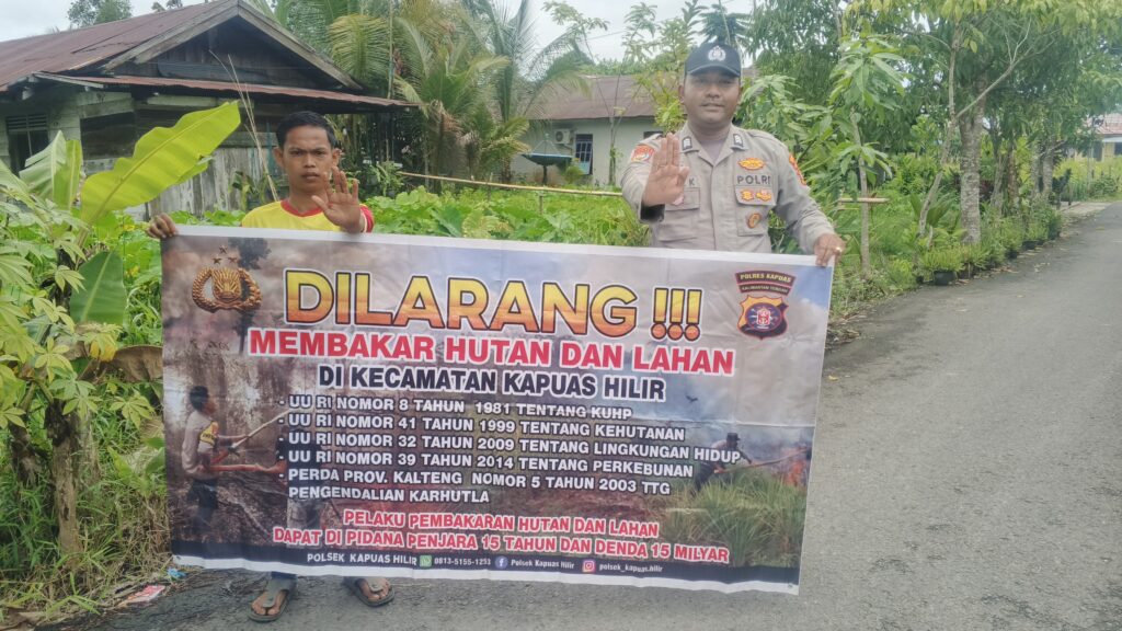 Kapolsek Kapuas Hilir Iptu Achmad Saepudin melalui anggotanya menyampaikan pesan serta himbauan kepada Warga masyarakat yang mempunyai lahan agar tidak membuka lahan dengan cara membakar, baik itu lahan pertanian maupun perkebunan.