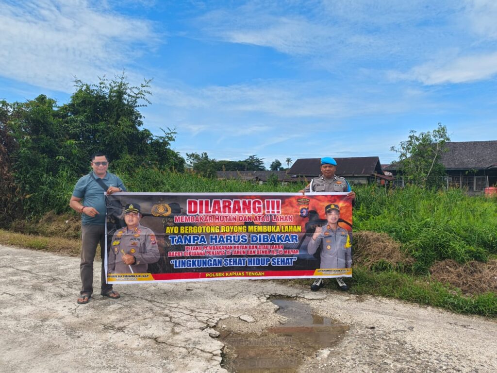 Tribratanews.kalteng.polri.go.id – Polsek Kapuas tengah jajaran Polres Kapuas Polda Kalteng, Selasa(16/12/2025) , Polsek Kapuas Tengah jajaran Polres Kapuas Provinsi Kalimanatan Tengah telah melaksanakan Kegiatan Sosialisasi Larangan Karhutla dengan spanduk dan Maklumat Kapolda Kalteng tentang Sangsi dan Pidana buka lahan dengan cara membakar, sesuai dengan Pasal 187,188 KUHP, Pasal 78 UU No. 14 Th. 1999, Pasal 108 UU No. 39 Th. 2014, dan Pasal 25 Perda Kalteng No. 5 Th. 2003 Dengan ancaman Pidana 15 Tahun dan denda 15 Milyar.