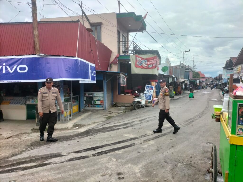 Personil polsek Kapuas Tengah rutin Patroli ke pasar harian Pujon desa Pujon.