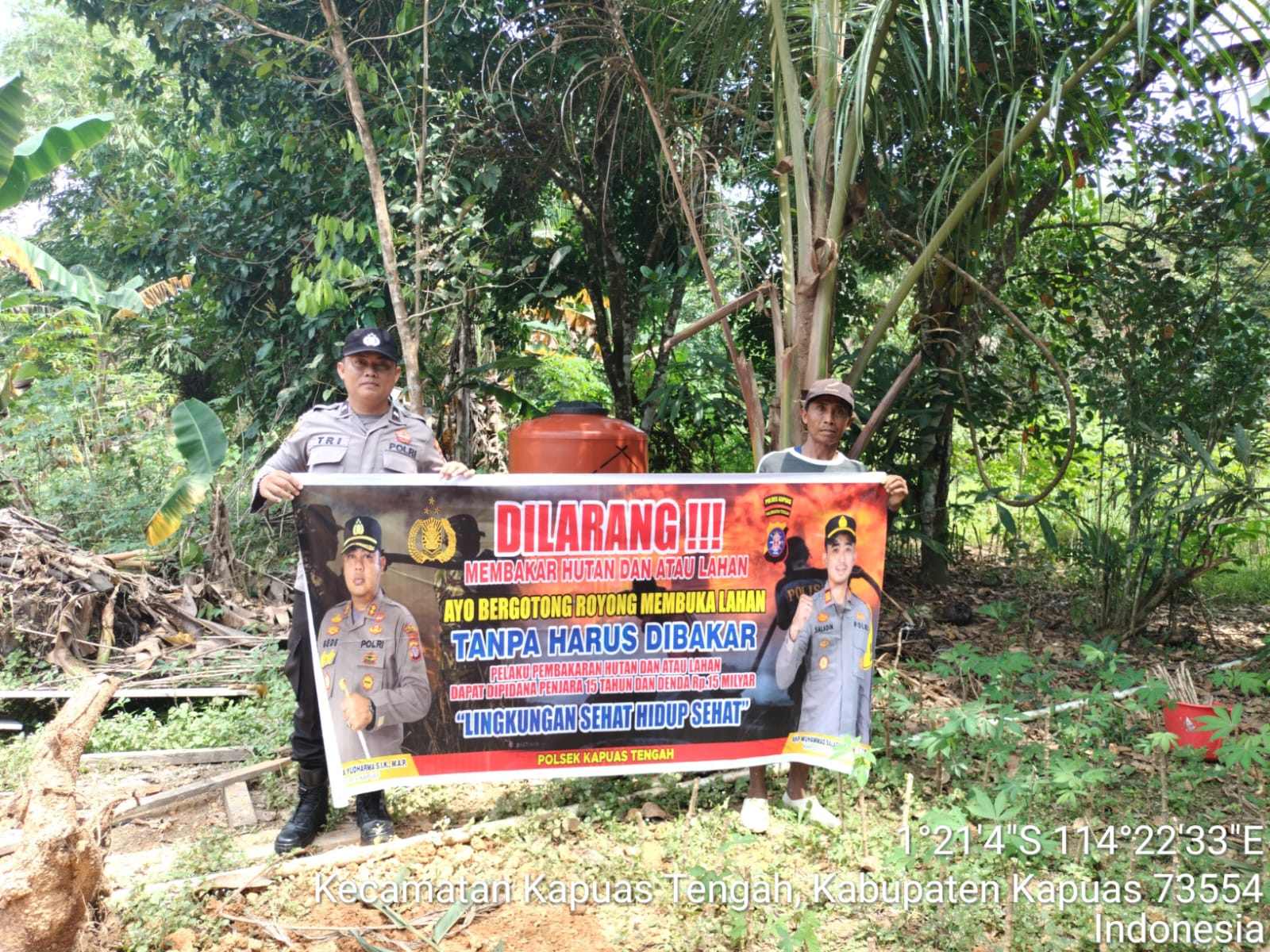 Tribratanews.kalteng.polri.go.id – Polsek Kapuas tengah jajaran Polres Kapuas Polda Kalteng,Selasa(24/03/2026) , Polsek Kapuas Tengah jajaran Polres Kapuas Provinsi Kalimanatan Tengah telah melaksanakan Kegiatan Sosialisasi Larangan Karhutla dengan spanduk dan Maklumat Kapolda Kalteng tentang Sangsi dan Pidana buka lahan dengan cara membakar, sesuai dengan Pasal 187,188 KUHP, Pasal 78 UU No. 14 Th. 1999, Pasal 108 UU No. 39 Th. 2014, dan Pasal 25 Perda Kalteng No. 5 Th. 2003 Dengan ancaman Pidana 15 Tahun dan denda 15 Milyar.