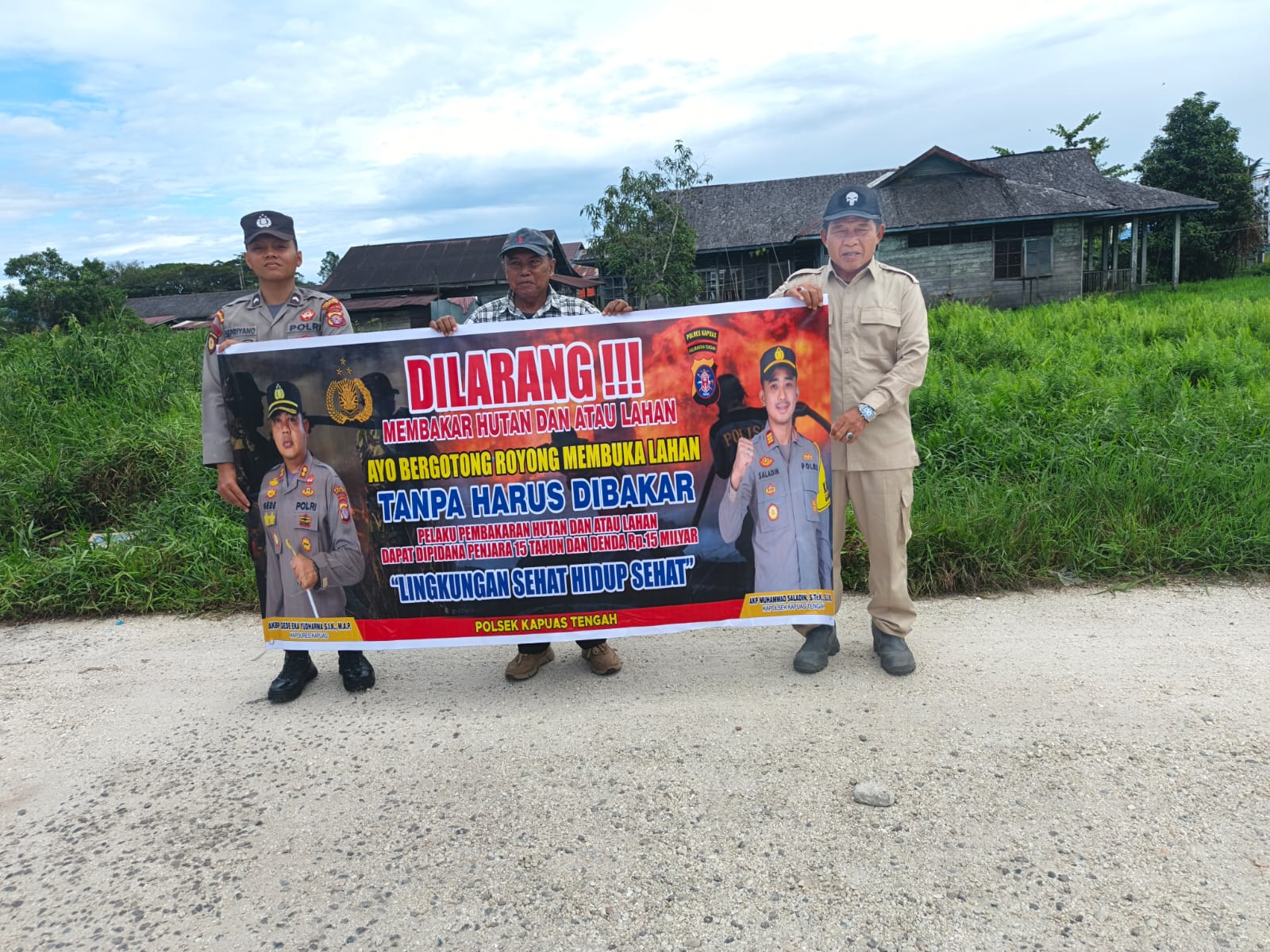 Tribratanews.kalteng.polri.go.id – Polsek Kapuas tengah jajaran Polres Kapuas Polda Kalteng,Senin(12/01/2026) , Polsek Kapuas Tengah jajaran Polres Kapuas Provinsi Kalimanatan Tengah telah melaksanakan Kegiatan Sosialisasi Larangan Karhutla dengan spanduk dan Maklumat Kapolda Kalteng tentang Sangsi dan Pidana buka lahan dengan cara membakar, sesuai dengan Pasal 187,188 KUHP, Pasal 78 UU No. 14 Th. 1999, Pasal 108 UU No. 39 Th. 2014, dan Pasal 25 Perda Kalteng No. 5 Th. 2003 Dengan ancaman Pidana 15 Tahun dan denda 15 Milyar.