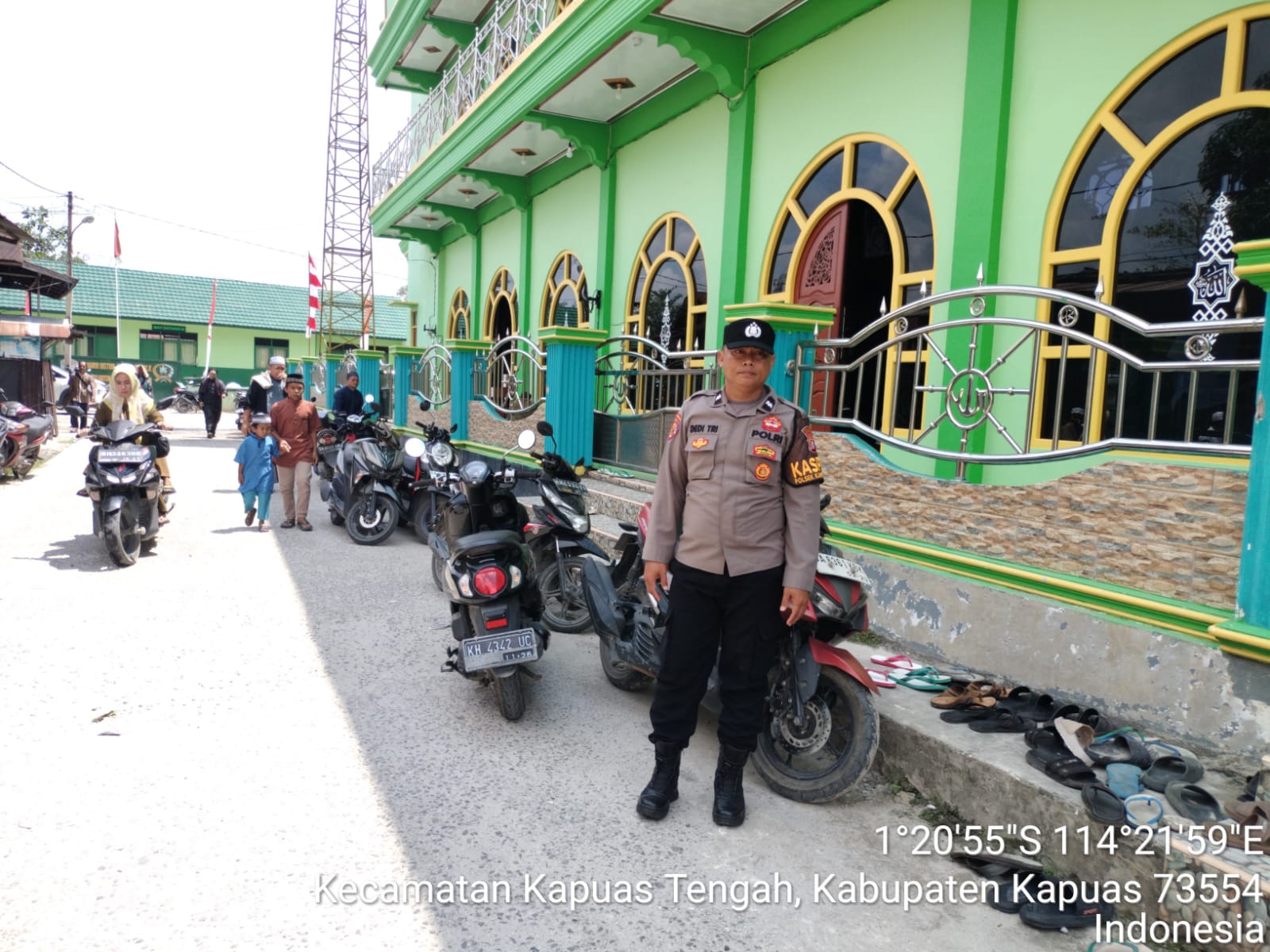 Piket Polsek Kapuas Tengah laksanakan PAM shalat Jum’at di masjid Al Furqon Pujon.