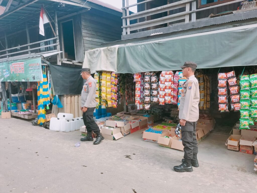 Piket Polsek Kapuas tengah Patroli ke pasar harian Pujon desa Pujon.