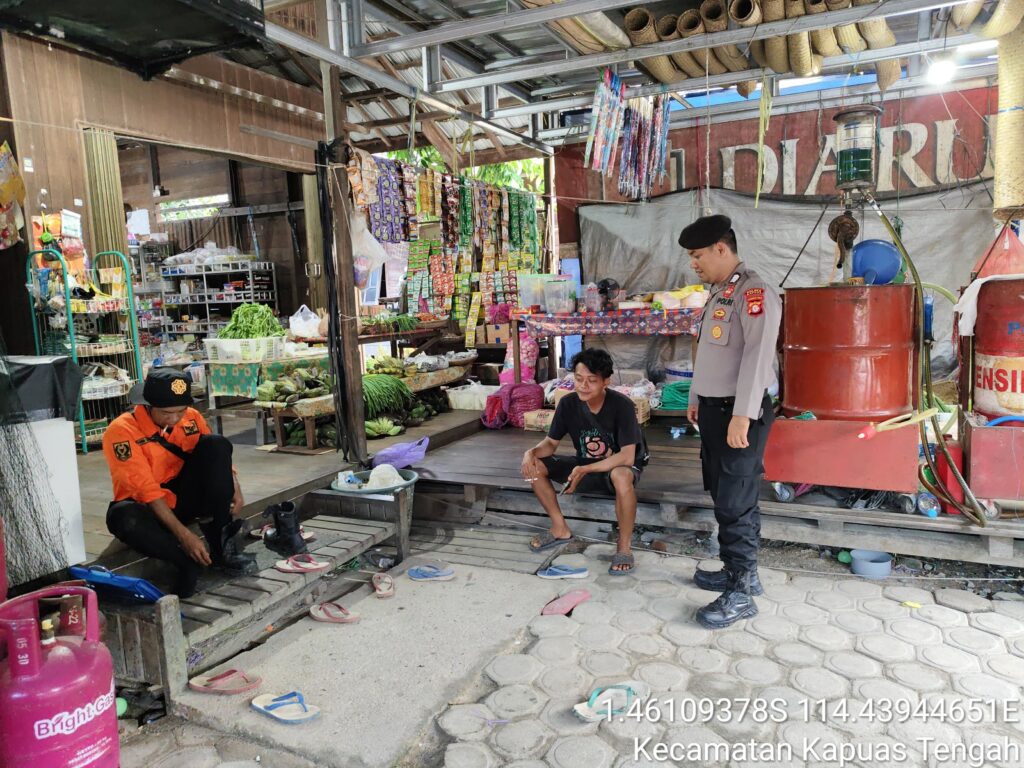 Piket Polsek Kapuas tengah Patroli ke pasar harian Pujon desa Pujon.