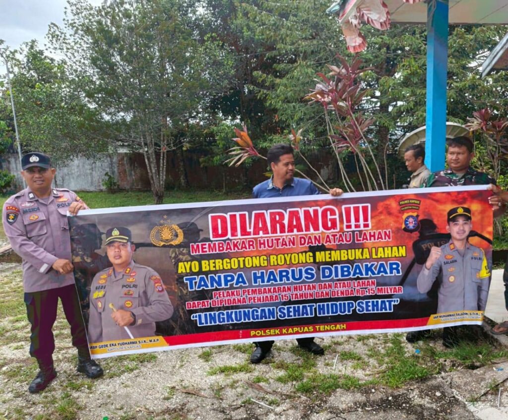 Tribratanews.kalteng.polri.go.id – Polsek Kapuas tengah jajaran Polres Kapuas Polda Kalteng, Sabtu (01/11/2025) , Polsek Kapuas Tengah jajaran Polres Kapuas Provinsi Kalimanatan Tengah telah melaksanakan Kegiatan Sosialisasi Larangan Karhutla dengan spanduk dan Maklumat Kapolda Kalteng tentang Sangsi dan Pidana buka lahan dengan cara membakar, sesuai dengan Pasal 187,188 KUHP, Pasal 78 UU No. 14 Th. 1999, Pasal 108 UU No. 39 Th. 2014, dan Pasal 25 Perda Kalteng No. 5 Th. 2003 Dengan ancaman Pidana 15 Tahun dan denda 15 Milyar.