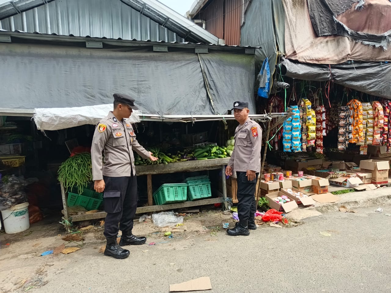 Piket polsek lakuakan giat rutin Patroli ke pasar harian Pujon desa Pujon.