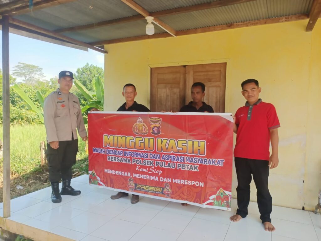 KAPUAS – Polda Kalteng Satuan Polres Kapuas Polsek Pulau Petak, Kanit Sabara Aiptu Anggoro beserta Anggota menggelar kegiatan “Minggu Kasih” untuk mendengar keluhan masyarakat secara langsung, Minggu (22/06/2025) yang dihadiri oleh warga Desa Sei Tatas Kecamatan Pulau Petak Kabupaten Kapuas Provinsi Kalimantan Tengah.