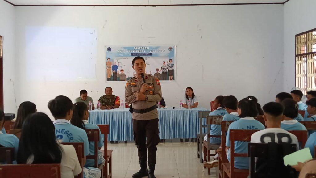 Humas Polres Minsel,- Pada hari Jumat, 12 September 2025, di Aula SMA Negeri 2 Tareran, Desa Wuwuk Barat, Kabupaten Minahasa Selatan, dilaksanakan Deklarasi Anti Perundungan dan Kekerasan bagi siswa kelas 10, 11, dan 12. Acara dimulai dengan sambutan oleh Ibu Feby Oroh dan menyanyikan lagu Indonesia Raya, serta doa oleh Bapak James Saragih. Sambutan diberikan oleh Ibu Nancy Bernadus dan Kapolsek Tareran, Ipda Andros Hiinur.