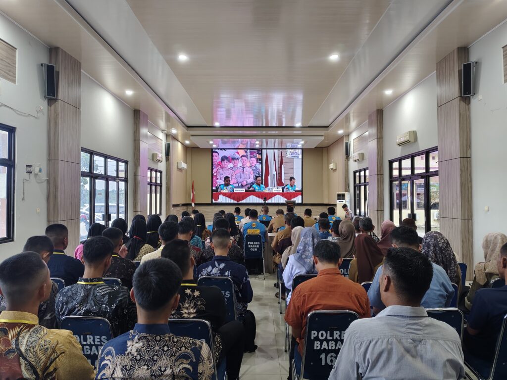 Polres Bangka Barat melaksanakan kegiatan penandatanganan Pakta Integritas dalam rangka penerimaan anggota Polri Tahun Anggaran 2026 yang digelar secara virtual melalui Zoom di Aula Polres, Selasa (31/3/2026) pukul 09.00 WIB.