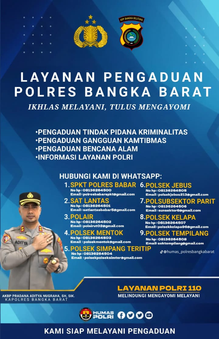 Selain layanan WhatsApp, Polres Bangka Barat juga mengingatkan masyarakat bahwa layanan darurat Polri 110 tetap aktif selama 24 jam dan dapat digunakan kapan saja dalam kondisi mendesak.