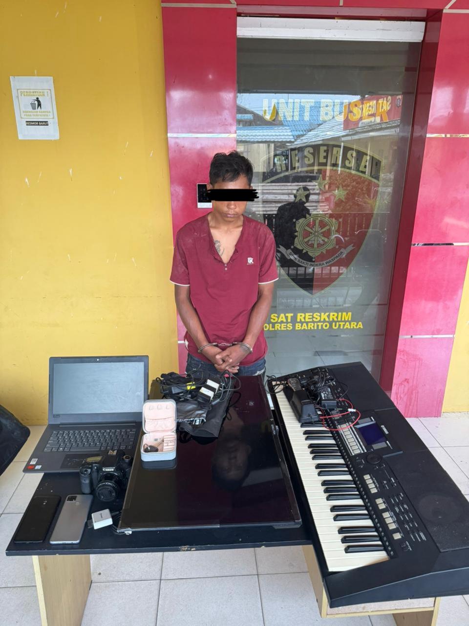 Kejadian bermula saat korban pulang dari melaksanakan ibadah dan mendapati jendela depan rumah dalam keadaan terbuka. Setelah memeriksa isi rumah, korban menyadari sejumlah barang berharga telah hilang, di antaranya satu unit laptop, kamera DSLR Canon, cincin emas putih seberat 5 gram, televisi Android, keyboard, serta dua unit handphone. Akibat kejadian tersebut, korban mengalami kerugian sekitar Rp25.700.000 dan segera melaporkannya ke Polres Barito Utara.