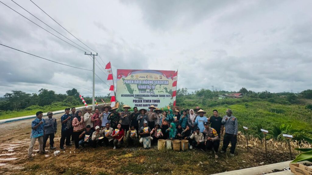 Muara Teweh, 11 Desember 2025 — Polres Barito Utara kembali menunjukkan komitmennya dalam mendukung program ketahanan pangan nasional melalui kegiatan Panen Jagung Serentak Kuartal IV yang dilaksanakan pada Kamis (11/12/2025) pukul 08.30 WIB di Kampung Jagung, Desa Sei Liju, Kecamatan Teweh Timur, Kabupaten Barito Utara.