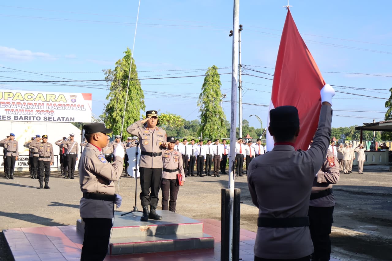 Buntok – Hari Kesadaran Nasional diperingati setiap bulannya pada tanggal 17. Polres Barito Selatan (Barsel), Polda Kalteng menggelar upacara bendera yang dilaksanakan di halaman Mako Satsamapta Jalan Tugu, Buntok, Jumat (17/4/2026) pagi.
