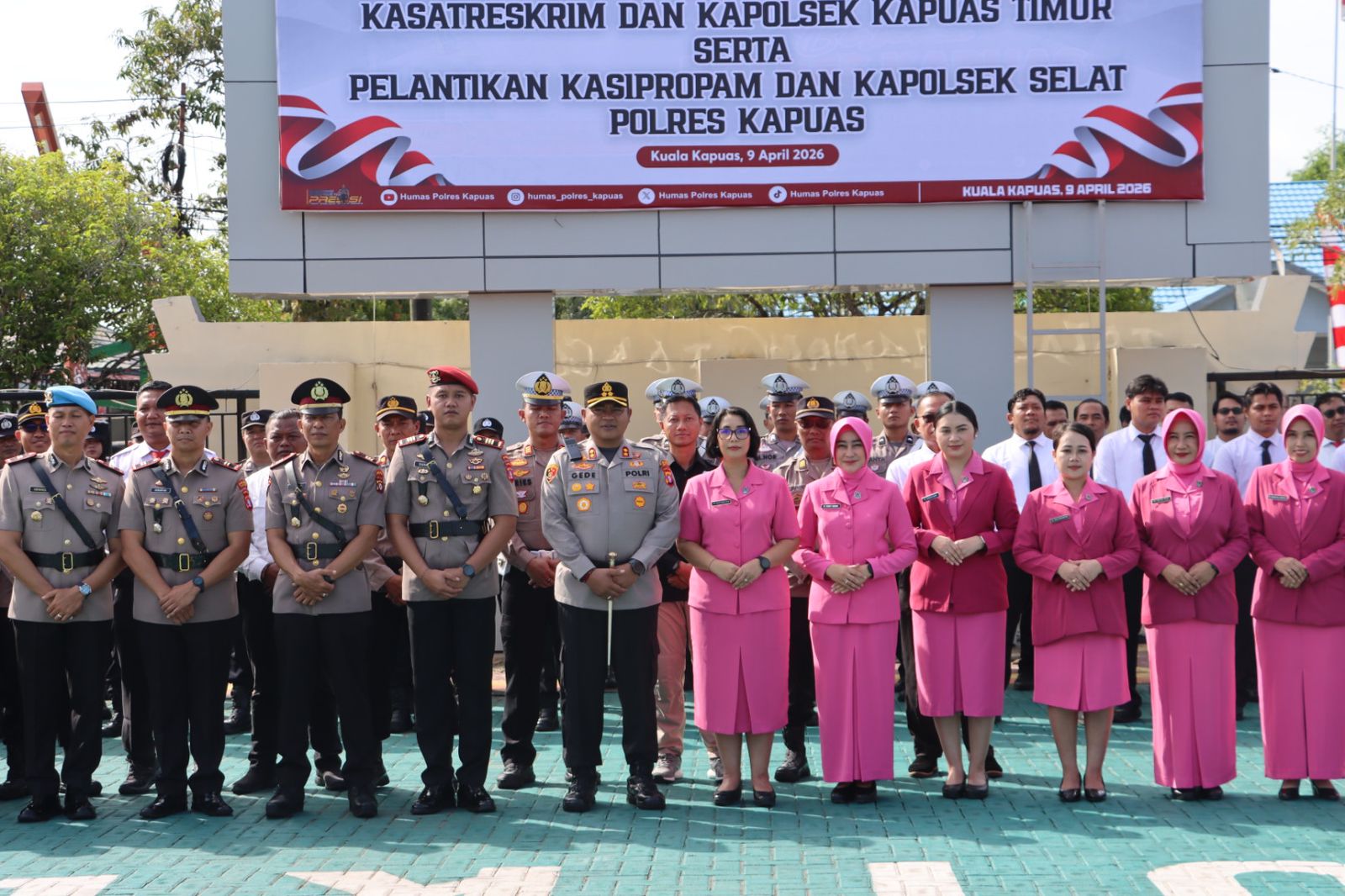 Kuala Kapuas – Suasana khidmat dan penuh kebersamaan mewarnai pelaksanaan Upacara Serah Terima Jabatan (Sertijab) Kasatreskrim dan Kapolsek Kapuas Timur serta Pelantikan Kasipropam dan Kapolsek Selat di lingkungan Polres Kapuas, Kamis (9/4/2026) pagi.