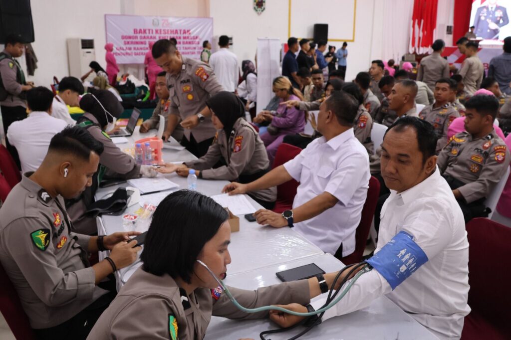 Kegiatan donor darah ini merupakan bagian dari acara puncak bakti kesehatan yang diselenggarakan oleh Polda Kalteng, bertempat di Graha Bhayangkara, Mapolda setempat, Senin (16/6/2025).