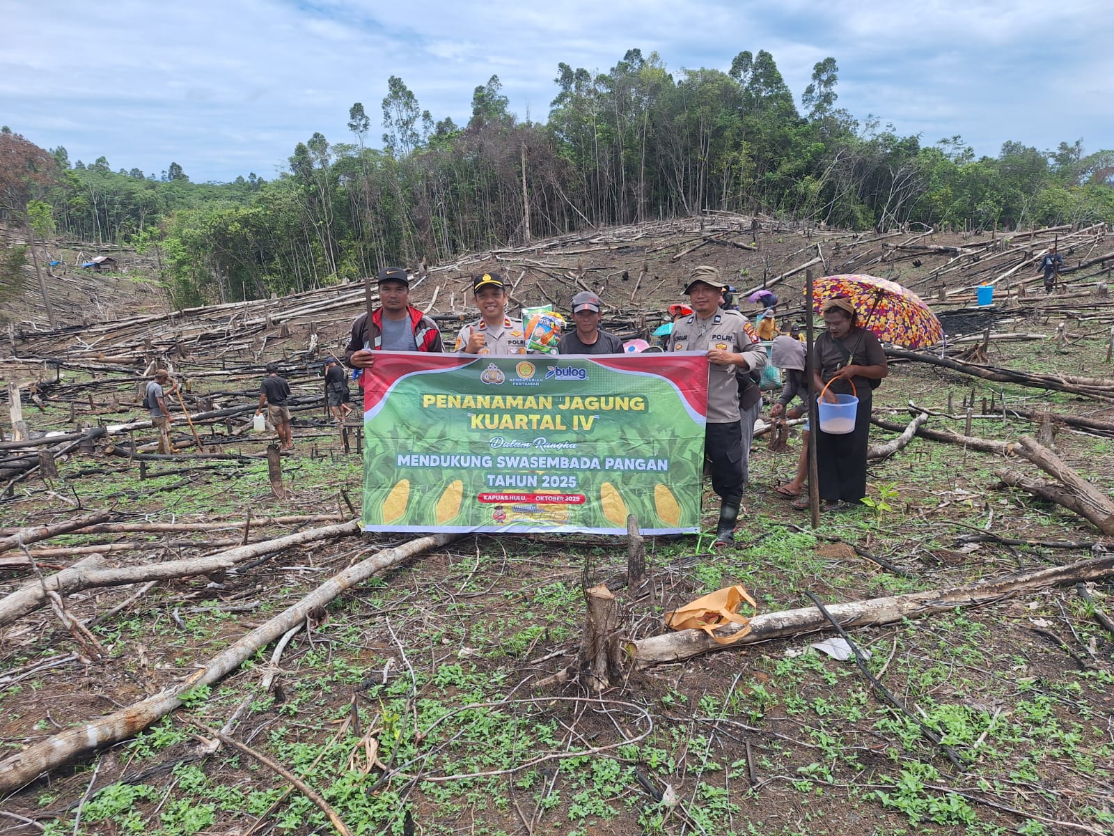 Tribratanews.kalteng.polri.go.id-Kapuas Hulu- Dalam rangka mendukung program ketahanan pangan nasional, Polsek Kapuas Hulu Polres Kapuas Polda Kalteng melaksanakan kegiatan penanaman jagung kuartal IV di lahan milik Sdr. Iwanto Rahung Bungai Rt. 02 Kec. Kapuas Hulu Kab. Kapuas Prov. Kalteng dengan koordinat: 0,9575S114,0253E, pada Kamis (30/10/2025) mulai pukul 09.00 Wib s.d. selesai.