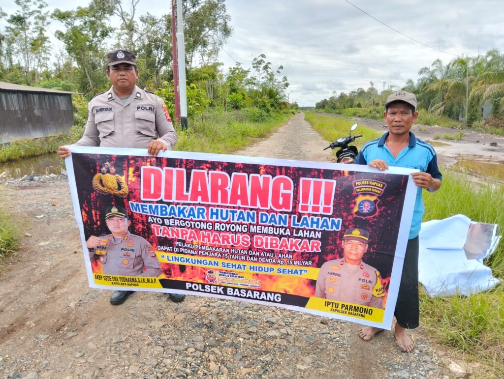 Seperti yang dilakukan anggota piket Polsek Basarang Aiptu Dodi Haryadi. saat melaksanakan kegiatan patroli dialogis mengimbau kepada warga baik melalui spanduk, maklumat Kapolda Kalteng tentang kebakaran hutan dan lahan, maupun memberikan penjelasan secara langsung kepada warga mengenai dampak yang ditimbulkan dari pembakaran hutan dan lahan, guna antisipasi terjadinya kebakaran yang lebih luas yang dapat mengganggu ekosistem, polusi udara dan merugikan kesehatan, dan bagi pelaku pembakaran diancam pidana maksimal hingga 15 tahun penjara dan denda 5 miliar rupiah sebagaimana tercantum dalam Pasal 78 Undang-Undang No. 41 Tahun 1999.