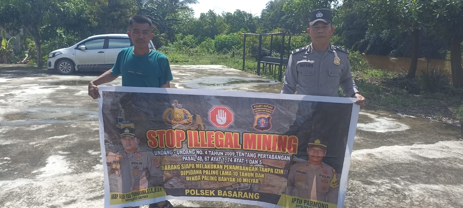 Polsek Basarang jajaran Polres Kapuas, Polda Kalteng, Personel Polsek Basarang rutin melakukan kegiatan sosialisasi pencegahan penambangan liar dan kerusakan lingkungan kepada masyarakat di wilayah Kecamatan Basarang Kabupaten Kapuas Provinsi Kalimantan Tengah, Selasa (31/3/2026)