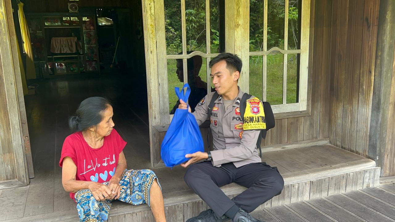 **Polsek Dusun Timur Gelar Bakti Sosial, Salurkan Sembako untuk Warga Kurang Mampu di Desa Haringen**