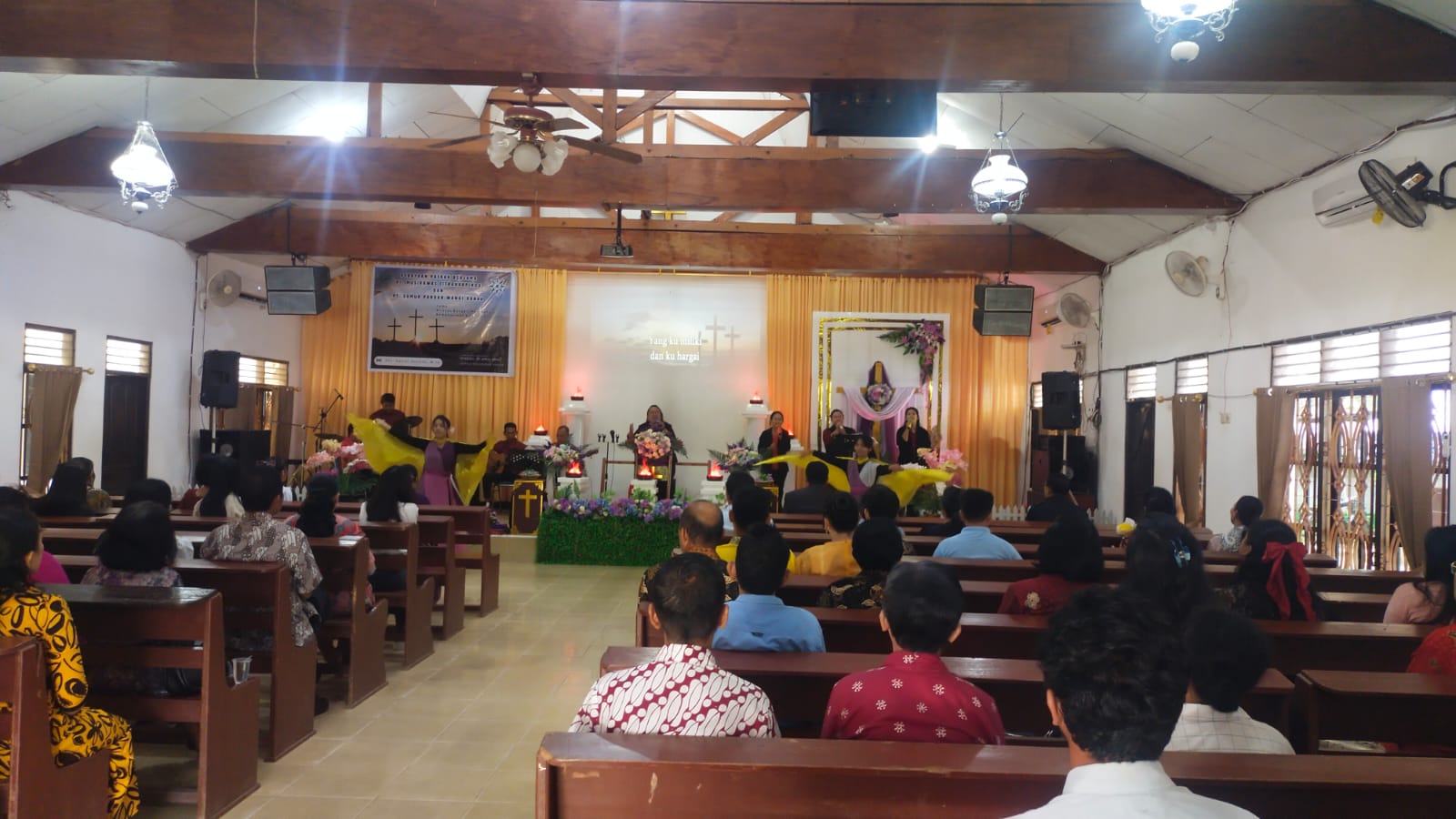 Ibadah Paskah yang mengusung tema “Kristus Bangkit Membaharui Kemanusiaan Kita” (2 Korintus 5:17) ini dipimpin oleh Pendeta Daniel Sutikno, S.Th, M.Th. Seluruh rangkaian kegiatan berlangsung dengan khidmat.