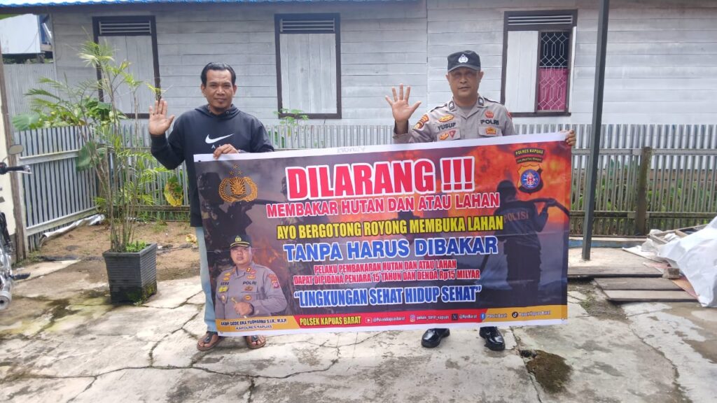 Polsek Kapuas Barat Polres Kapuas Jajaran Polda Kalimantan Tengah melaksanakan himbauan untuk tidak membuka lahan dengan cara membakar kepada masyarakat Kecamatan Kapuas Barat Kabupaten Kapuas, Kamis (18/12/2025).