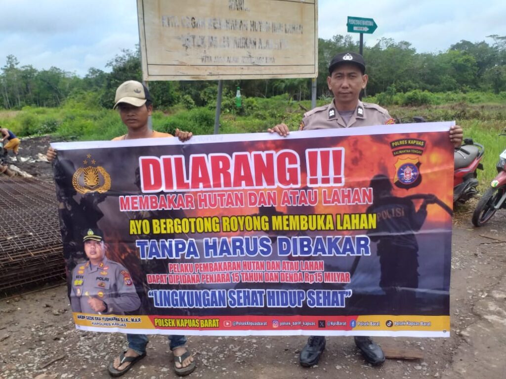 Polsek Kapuas Barat terus mengintensifkan upaya pencegahan kebakaran hutan dan lahan (Karhutla) di wilayah hukumnya. Pada Jumat, 05 Desember 2025 sekitar pukul 12.00 WIB, dua personel Polsek Kapuas Barat, yaitu Aiptu Topas T.R dan Bripka Misrani, melaksanakan kegiatan himbauan langsung kepada masyarakat terkait bahaya dan larangan membuka lahan dengan cara membakar.