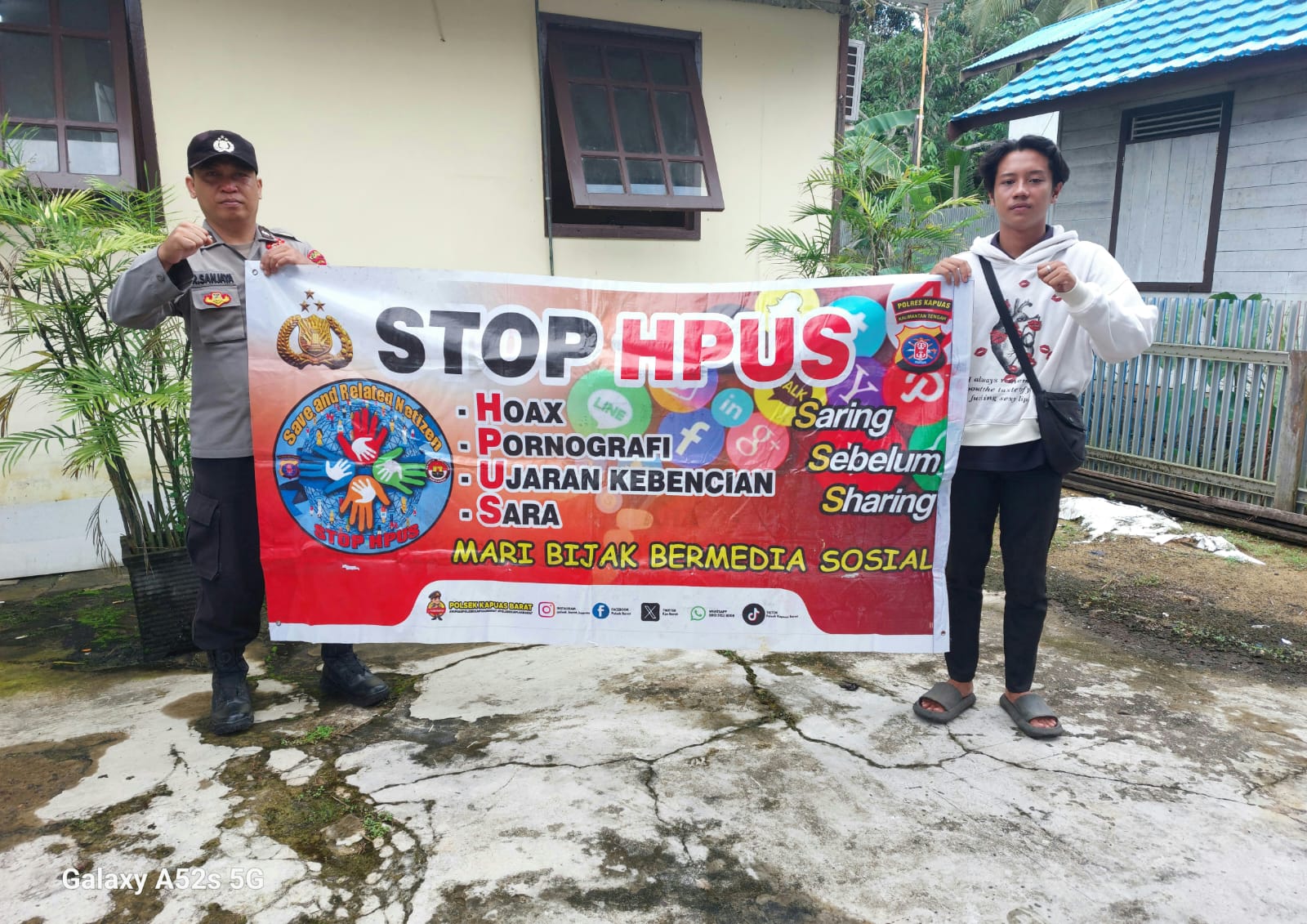 Kapolsek Kapuas Barat IPDA SISWONO TRI. S. S.H. MM. menyampaikan, anggotanya rutin mensosialisasikan program pemerintah tentang HPUS (Hoax, Pornografi, Ujaran Kebencian dan Sara) kepada warga dengan menggunakan media spanduk imbauan.