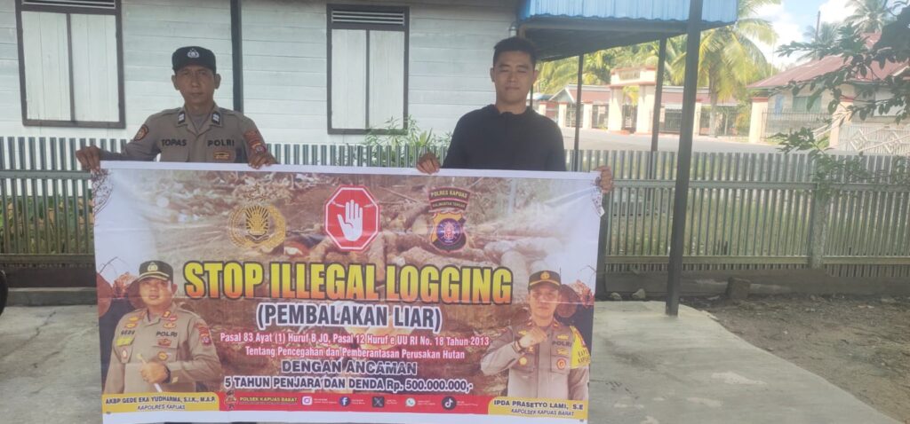 Kapolsek Kapuas Barat IPDA PRASETYO LAMI, S.E. menjelaskan “kegiatan sosialisasi ini adalah sebagai upaya mensosialisasikan terhadap masyarakat agar tau betapa perlunya menjaga kelestarian hutan, dengan stop illegal logging kepada masyarakat kita imbau agar tidak melakukan perbuatan melanggar hukum”.