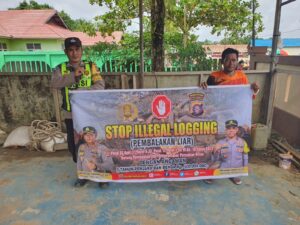 “Melalui spanduk ini, kami mengajak masyarakat untuk tidak melakukan pembalakan liar sesuai Pasal 83 ayat (1) huruf B Jo, Pasal 12 huruf e UU RI no. 18 tahun 2013 tentang pencegahan dan pemberantasan perusakan hutan, dengan ancaman 5 tahun penjara dan denda Rp500.000.000 (lima ratus juta rupiah),” terangnya.