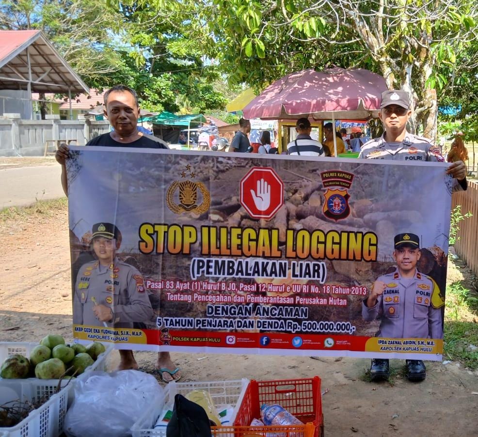 Hal ini disampaikan Kapolsek Kapuas Hulu Ipda Zaenal Abidin, S.H., M.E. tentang tujuan imbauan melalui media spanduk stop illegal logging stop penebangan hutan kepada warga Kec. Kapuas Hulu Kab. Kapuas, Kalteng.