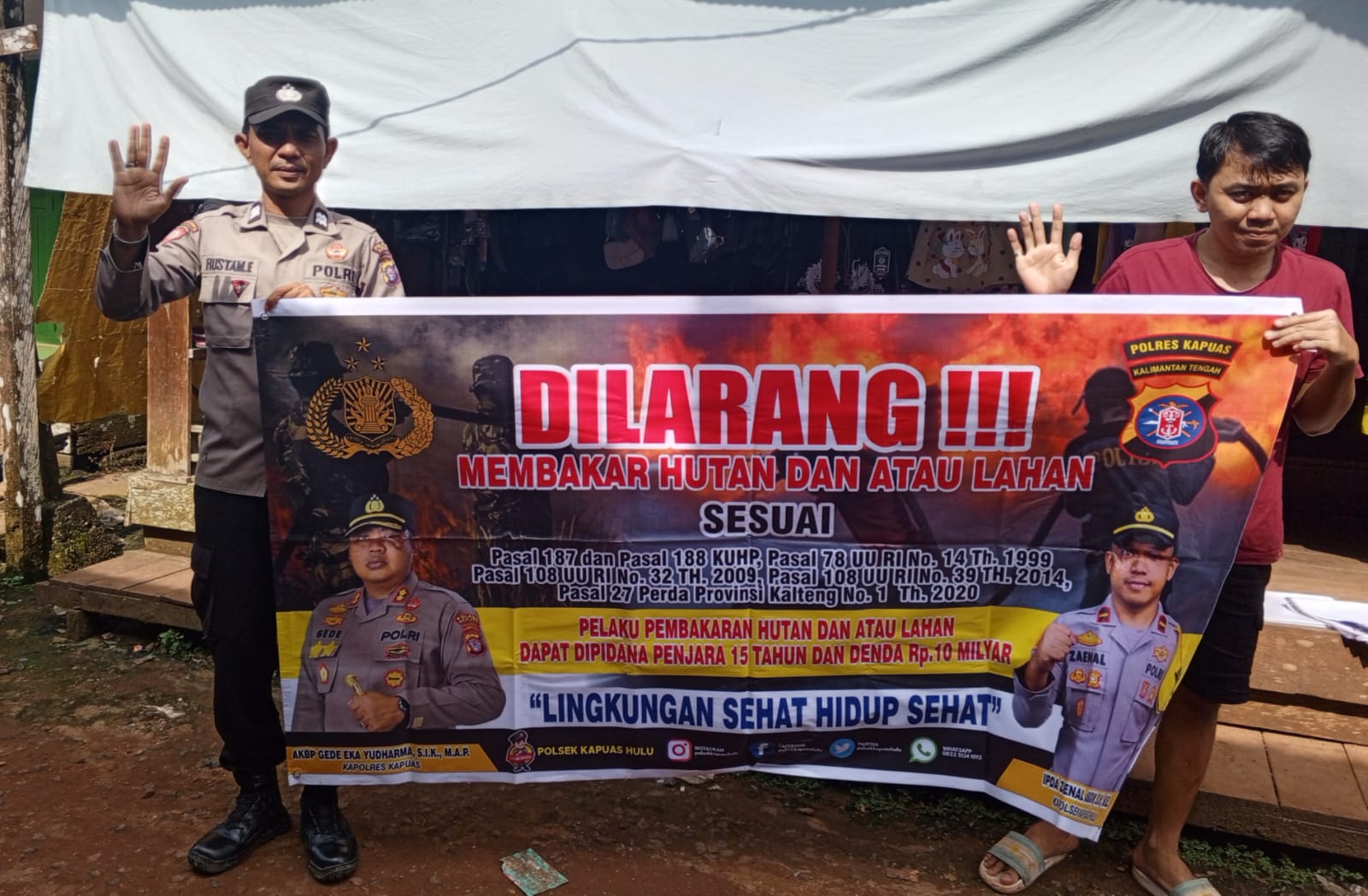 Sedangkan sanksi dan pidana membuka lahan dengan cara membakar, sesuai dengan pasal 187 dan pasal 188 KUHP, pasal 78 UU RI Nomor 41 Tahun 1999 tentang kehutanan, pasal 99 ayat (1), pasal 108, pasal 116, pasal 118, dan pasal 119 UU RI Nomor 32 Tahun 2009 tentang lingkungan hidup, pasal 108 UU RI Nomor 39 Tahun 2014 tentang perkebunan, pasal 27 Perda Prov. Kalteng Nomor 1 Tahun 2020 tentang pengendalian karhutla, pelaku pembakaran lahan dan hutan dapat di pidana penjara 15 Tahun dan denda 15 milyar,” tegas Kapolsek. (@13)