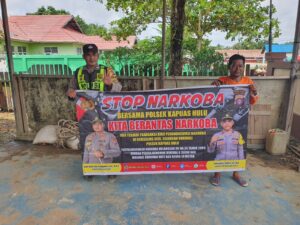 Tribratanews.kalteng.polri.go.id-Kapuas Hulu-Dalam upaya meningkatkan pencegahan dan penanggulangan penyalahgunaan narkoba, personel Polsek Kapuas Hulu Polres Kapuas jajaran Polda Kalteng Aipda Imanuel P. Nadeak dan Brigpol A. Pasaribu rutin melaksanakan sosialisasi telah melaksanakan imbauan melalui media spanduk bertuliskan “Stop Narkoba” di beberapa lokasi yang dianggap rawan tindak pidana narkoba. Bertempat di Desa Sei Hanyo Kecamatan Kapuas Hulu Kabupaten Kapuas Provinsi Kalimantan Tengah, Selasa (17/03/2026) pukul 12.00 WIB