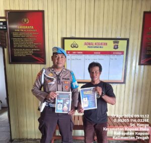 Tribratanews.kalteng.polri.go.id-Kapuas Hulu-Unitpropam Polsek Kapuas Hulu Polres Kapuas lakukan sosialisasi aplikasi/barcode pelayanan dan pengaduan (yanduan) Propam Polri kepada masyarakat diruang pelayanan publik Polsek Kapuas Huli, Jumat (17/04/2026) pukul 09.00 Wib.