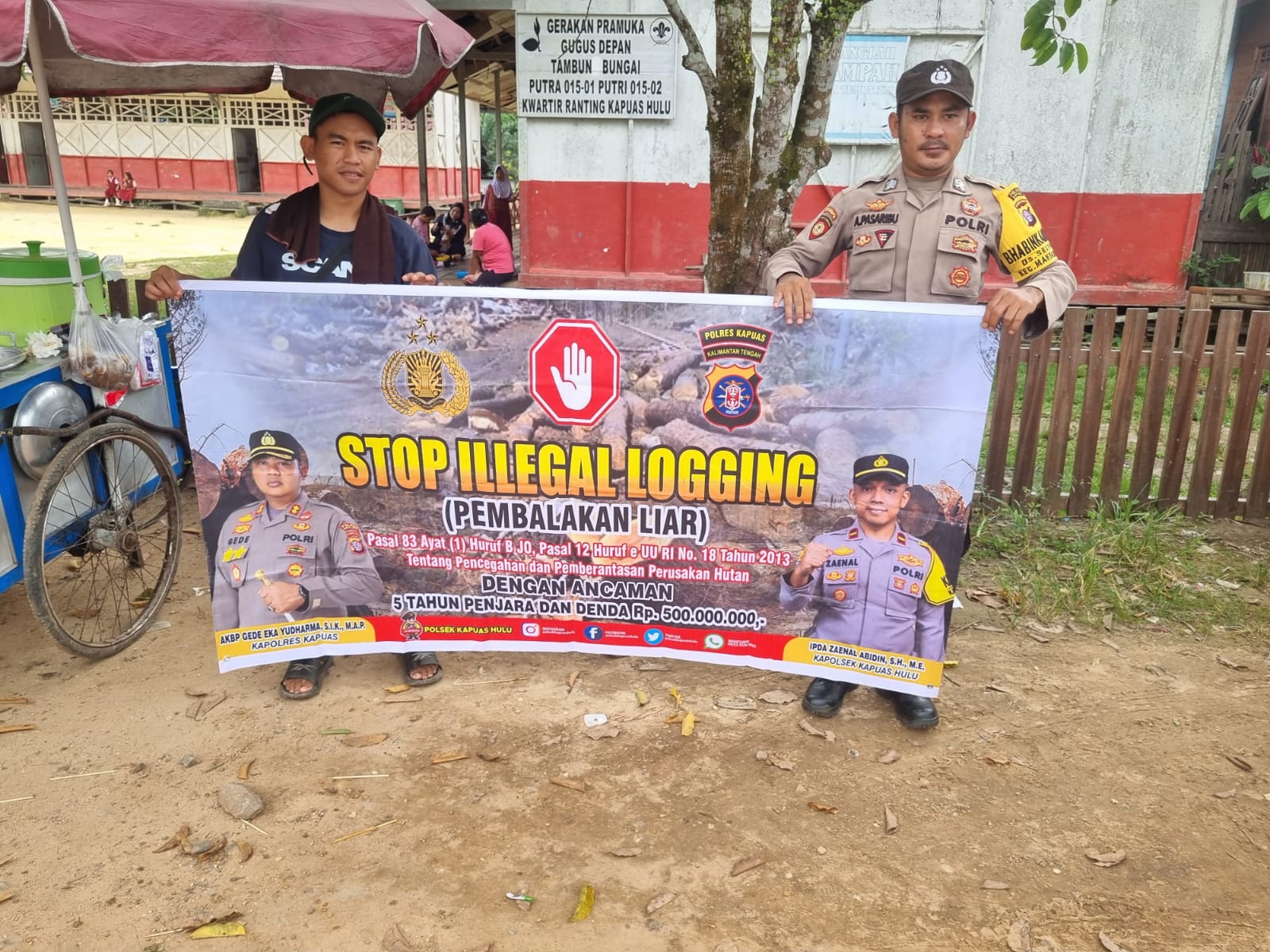 Kapolsek Kapuas Hulu Ipda Zaenal Abidin, S.H., M.E., menyampaikan kegiatan ini dilakukan secara rutin dan terus-menerus dengan langsung turun ke semua wilayah baik pada tingkat Desa maupun pada tingkat Kecamatan agar masyarakat mengetahui tentang larangan praktek illegal logging.