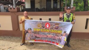 “Melalui spanduk ini, kami mengajak masyarakat untuk tidak melakukan pembalakan liar sesuai dgn Pasal 83 Ayat (1) Huruf B Jo Pasal 12 Huruf E Undang-undang Republik Indonesia No. 18 Tahun 2013, Tentang Pencegahan dan Pemberantasan Perusakan Hutan dengan ancaman 5 Tahun Penjara dan denda Rp500.000.000,-” terangnya.