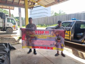Personel Polsek Kapuas Hulu Polres Kapuas Aiptu Rama Wijayadi dan Brigpol Beni. S, S.H., melaksanakan sosialisasi menggunakan spanduk yang berbunyi Stop Penambangan Liar Dan Penggunaan Bahan Kimia Merkuri di Desa Sei. Hanyo Kecamatan Kapuas Hulu Kapuas Hulu Kabupaten Kapuas Provinsi Kalimantan Tengah, Kamis (02/04/2026) pukul 08.55 Wib.