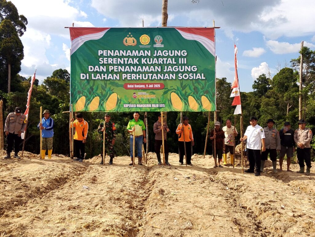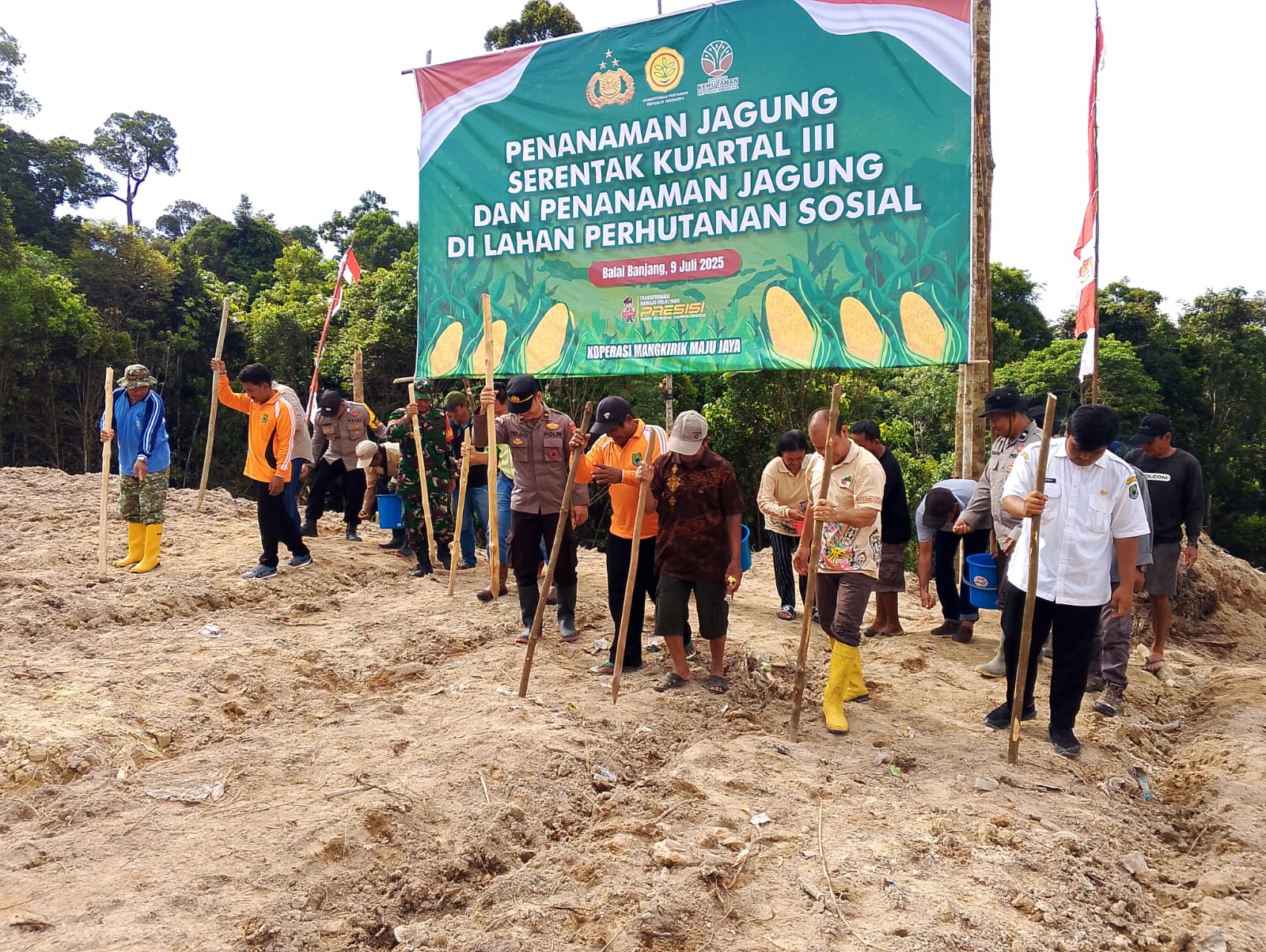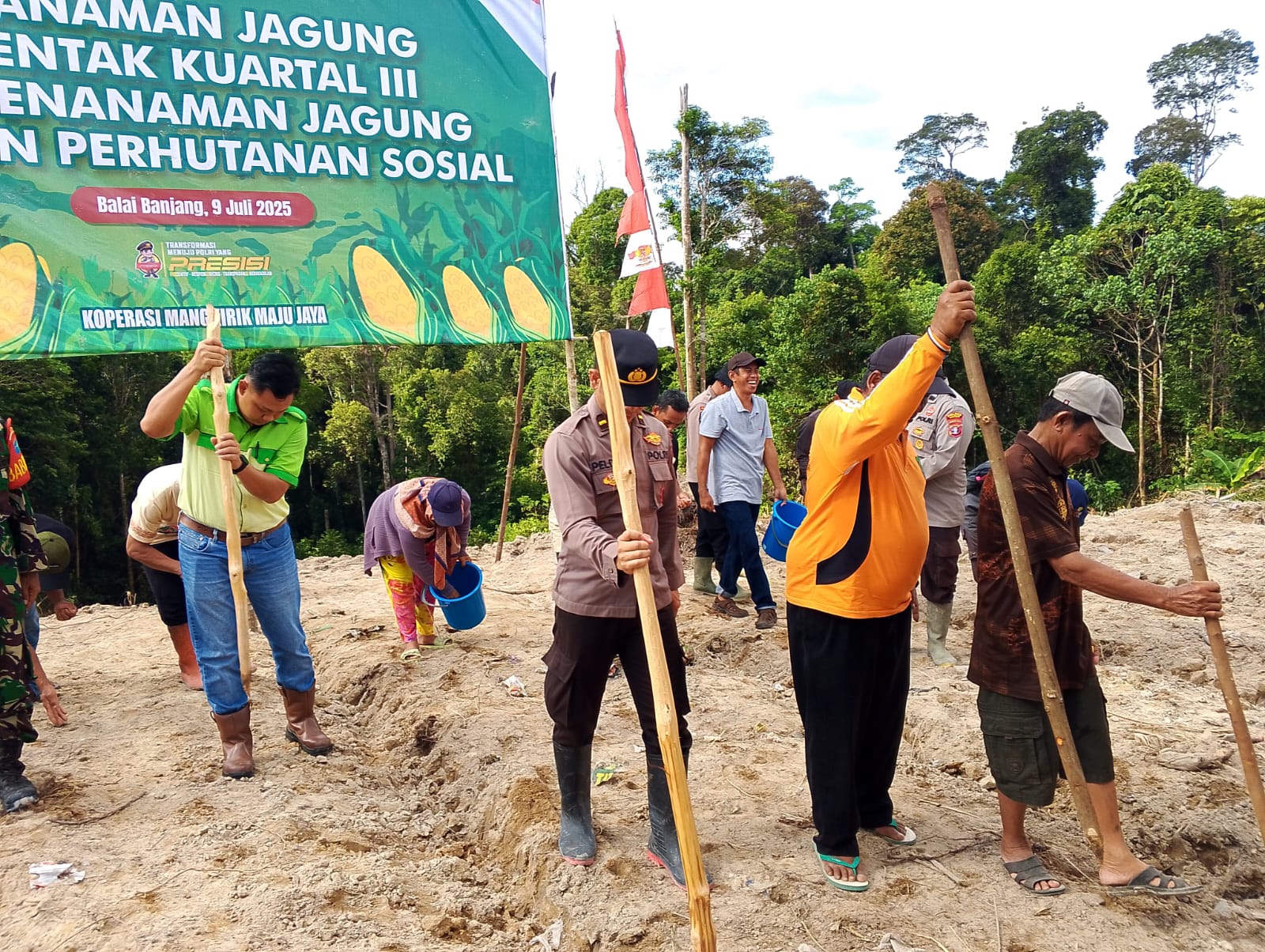 POLSEK KAPUAS TENGAH GELAR PENANAMAN JAGUNG SERENTAK DI LAHAN PERHUTANAN SOSIAL DESA BALAI BANJANG