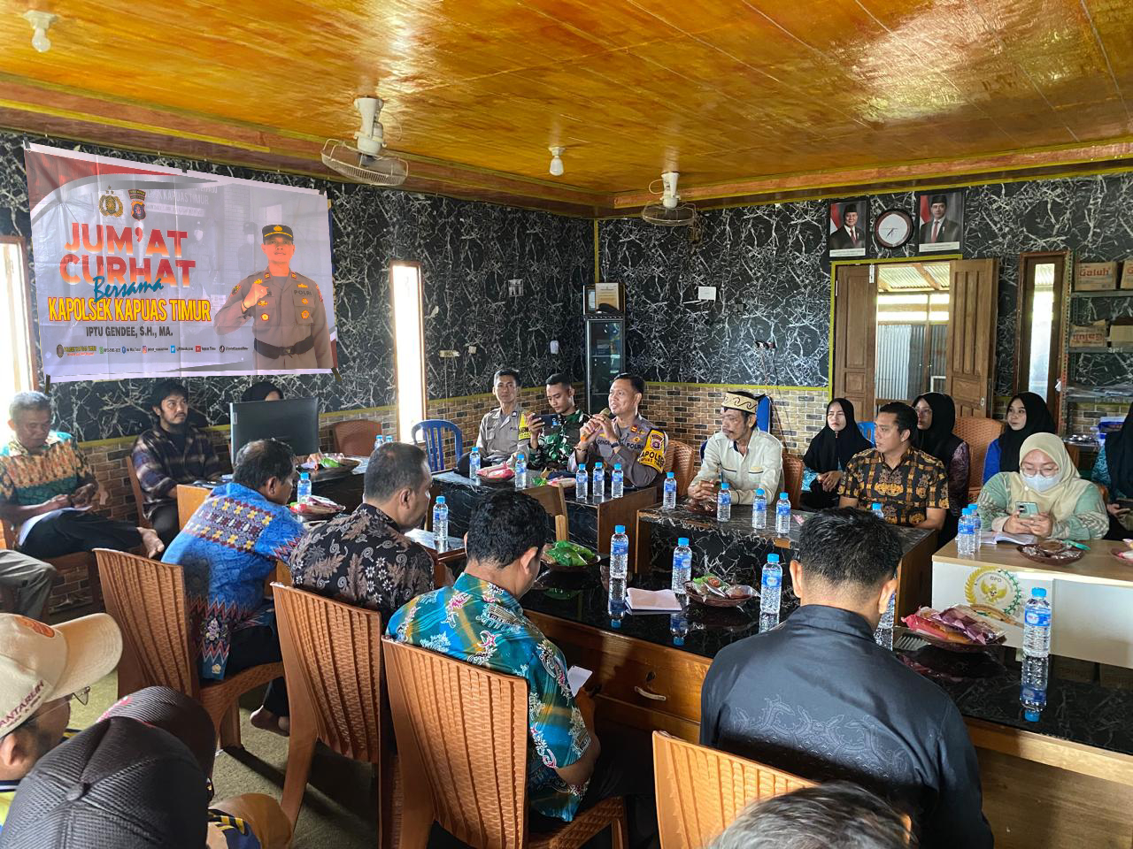 Kapuas Timur-Kapolres Kapuas Akbp Gede Eka Yudharma, S.I.K, M.A.P, melalui Kapolsek Kapuas Timur Iptu Gendee, S.H., M.A. bersama personel Polsek Kapuas Timur melaksanakan kegiatan Jumat Curhat untuk bersama-sama mendengarkan keluh kesah maupun aspirasi warga diwilayah Kecamatan Kapuas Timur melalui program Jumat Curhat di bersama unsur tripika, kades dan aparat desa serta tokoh masyarakat Desa Anjir Serapat Barat, Jumat (12/09/2025) pukul 09.00 Wib.
