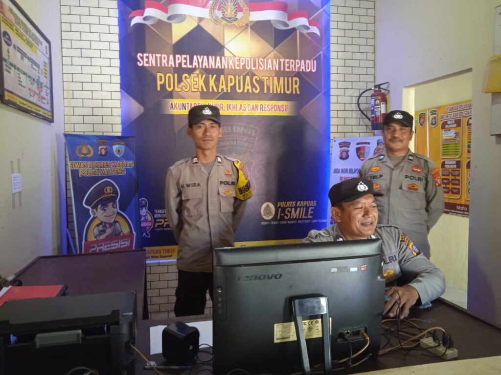 Kapuas Timur-Polsek Kapuas Timur Polres Kapuas jajaran Polda Kalteng dalam rangka memberikan pelayanan yang optimal kepada masyarakat dan pengamanan mako Polsek Kapuas Timur dilaksanakan serah terima tugas penjagaan. Serah terima penjagaan dilaksanakan oleh piket lama kepada piket baru di ruangan SPKT Polsek Kapuas Timur Polres Kapuas, Minggu (22/06/2025) pukul 08.00 Wib.