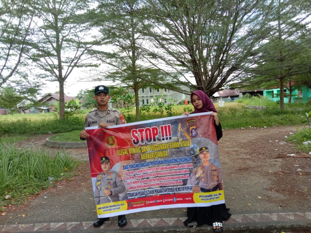 “Personel Polsek Kapuas Timur membentangkan spanduk bertuliskan stop illegal mining serta sanksi pidana RI nomor 3 tahun 2020 tentang pertambangan mineral dan batubara, undang-undang RI nomor 7 tahun 2014 tentang perdagangan bahan kimia/sianida, dan undang-undang RI nomor 9 tahun 2008 tentang penggunaan bahan kimia sebagai senjata kimia memberikan himbauan bersama-sama dalam menanggulangi illegal mining apabila mendengar, melihat suatu kegiatan penambangan iIlegal agar segera melaporkannya ke Polsek Kapuas Timur atau bisa melaporkannya kepada Bhabinkamtibmas atau Polmas untuk segera di tindak lanjuti”. tegas Kapolsek. (u33)