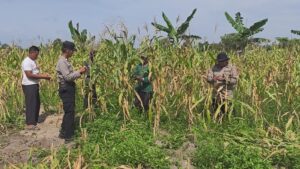 Kapuas – Polda Kalteng, Polres Kapuas, Polsek Mantangai dalam upaya mendukung program ketahanan pangan yang digagas oleh Presiden Republik Indonesia, H. Prabowo Subianto, personel piket SPKT Polsek Mantangai Aiptu Agus Sukisno dan Aiptu Alfrid Gunawan bersama pemilik lahan Sdr. Jumino warga Desa Rantau Jaya RT 01 Kec. Mantangai, melaksanakan pengecekan pemanfaatan lahan pekarangan mandiri berupa tanaman jagung dan lainnya, Selasa (24/03/2026).