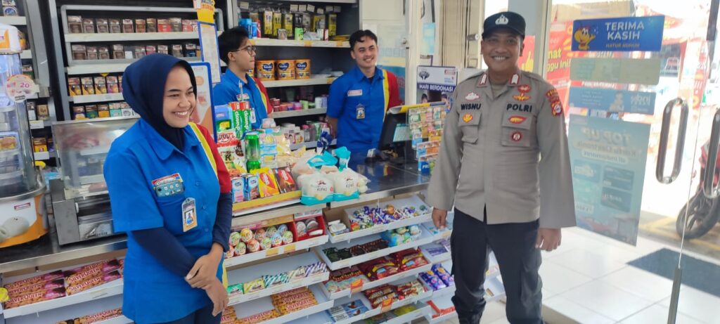 LEBAK- Anggota Polsek Rangkasbitung Polres Lebak,AIPDA Wahyu Zjatmiko dan BRIPKA Wisnu Eko, temui karyawan toko Indomaret Sampaikan Pesan Kamtibmas.