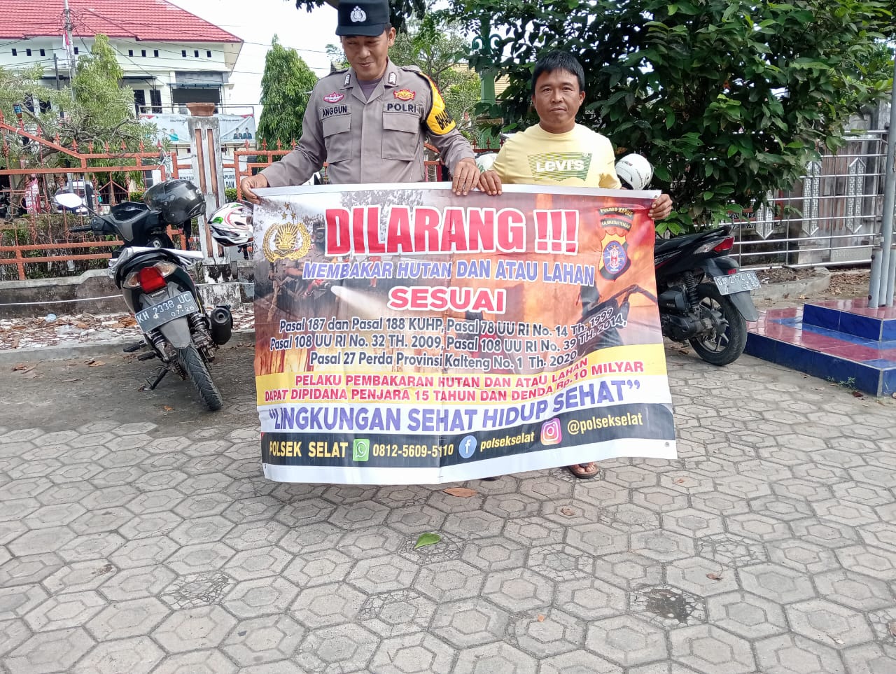 Polsek Selat laksanakan Kegiatan Sosialisasi / Himbauan dengan menggunakan spanduk tentang larangan membuka hutan / lahan dengan cara membakar