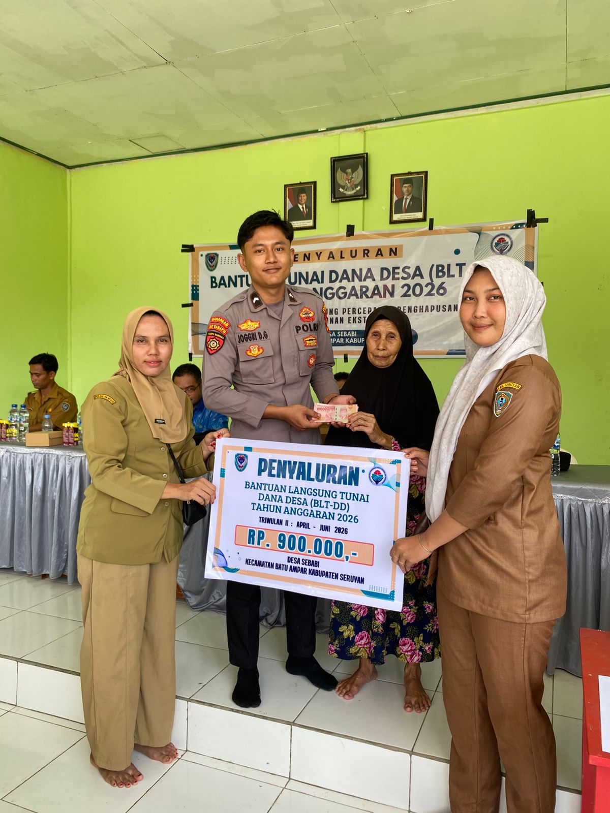 Polres Seruyan, 21 April 2026 – Bertempat di Kantor Desa Sebabi, Kecamatan Batu Ampar, Kabupaten Seruyan, telah dilaksanakan kegiatan penyerahan Bantuan Langsung Tunai Dana Desa (BLT-DD) Tahap I untuk 6 bulan (Januari – Juni) kepada Keluarga Penerima Manfaat (KPM) di Desa Sebabi, pada Selasa (21/4) mulai pukul 08.30 WIB hingga selesai.