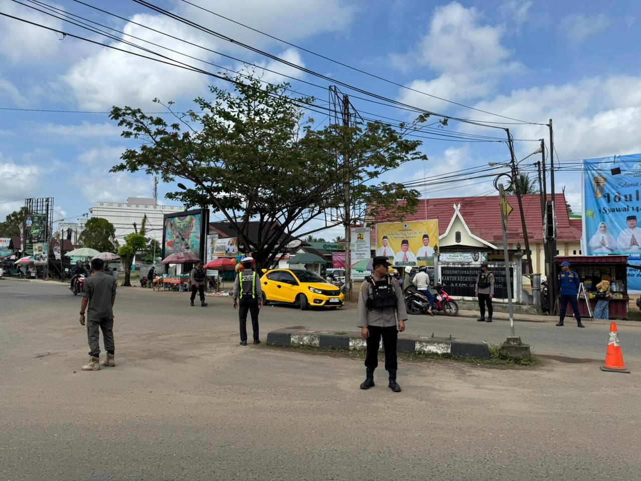 Selain itu, personel juga melaksanakan pengaturan arus lalu lintas di kawasan Bundaran Ampah yang merupakan salah satu titik strategis dan rawan kepadatan kendaraan, khususnya pada masa arus balik Lebaran.